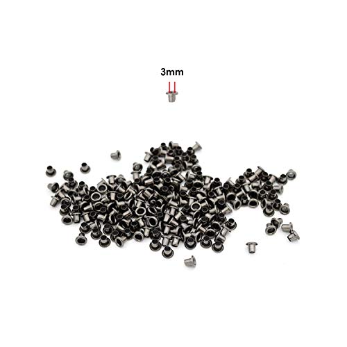 OCCHIELLI GROMMET: Questi occhielli/occhielli hanno un foro interno di 3 mm, una larghezza totale di 6 mm e un'altezza di 4 mm. Questi occhielli per occhielli sono utilizzati per il fissaggio di indumenti e materiale in pelle. Ti darà un bell'aspetto rifinito su entrambi i lati del tuo pezzo di pelle