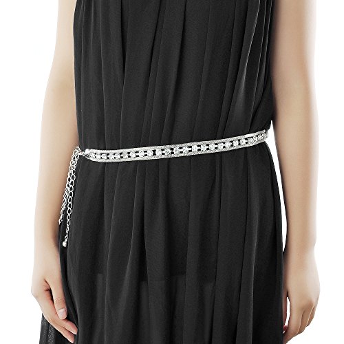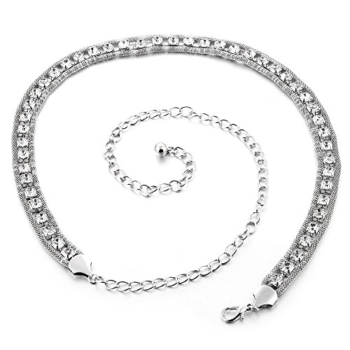 Trimming Shop Taglio Negozio 108 CM Catena d'Argento del Metallo Registrabile Cintura con One Strass Row per Le Donne Signore - One Size Fits all