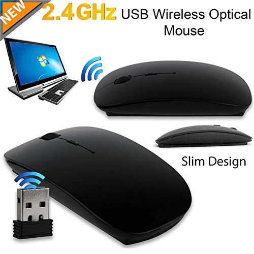 Trimming Shop 2.4GHz Wireless Sottile Mouse Cordless Ottico Topi con USB Nano Ricevitore per Laptop, Notebook, Windows 7/8/10, Linux, PC, Computer - Nero