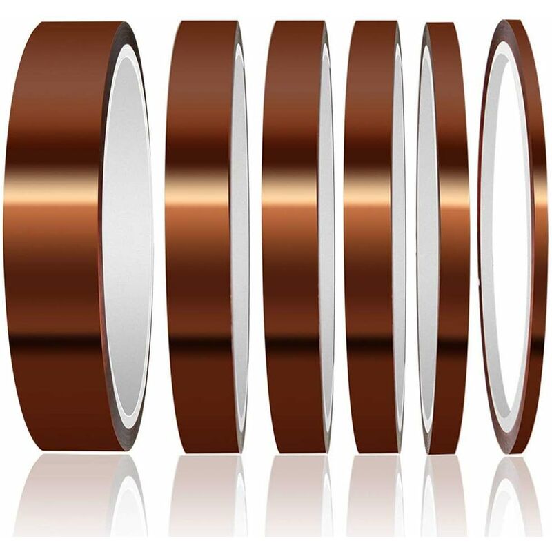 Il pacchetto include: 6 rotoli di nastri per alte temperature di diverse dimensioni, 3/6/8/10/12/20 mm di larghezza e 33 m di lunghezza. Buon materiale: Questo nastro per alte temperature è realizzato in poliimmide e mostra un eccellente equilibrio di proprietà fisiche, chimiche ed elettriche in un ampio intervallo di temperature. Resiste a temperature fino a circa 180°C. Ampia applicazione: ideale per una varietà di progetti domestici e commerciali, come circuiti di mascheratura, saldatura, isolamento elettrico e cavi di collegamento. È anche ampiamente utilizzato come isolante elettrico per trasformatori, motori, bobine, condensatori e convertitori di frequenza nell'elettronica e in altri settori. Alte prestazioni: Il nastro per alte temperature è più resistente ai raggi UV, alle alte temperature, agli acidi, agli alcali, all'olio, all'umidità e all'abrasione. Nessun residuo: Adesivo a base di silicone, facilmente pelabile e non lascia residui dopo la pelatura. I nastri High Temp