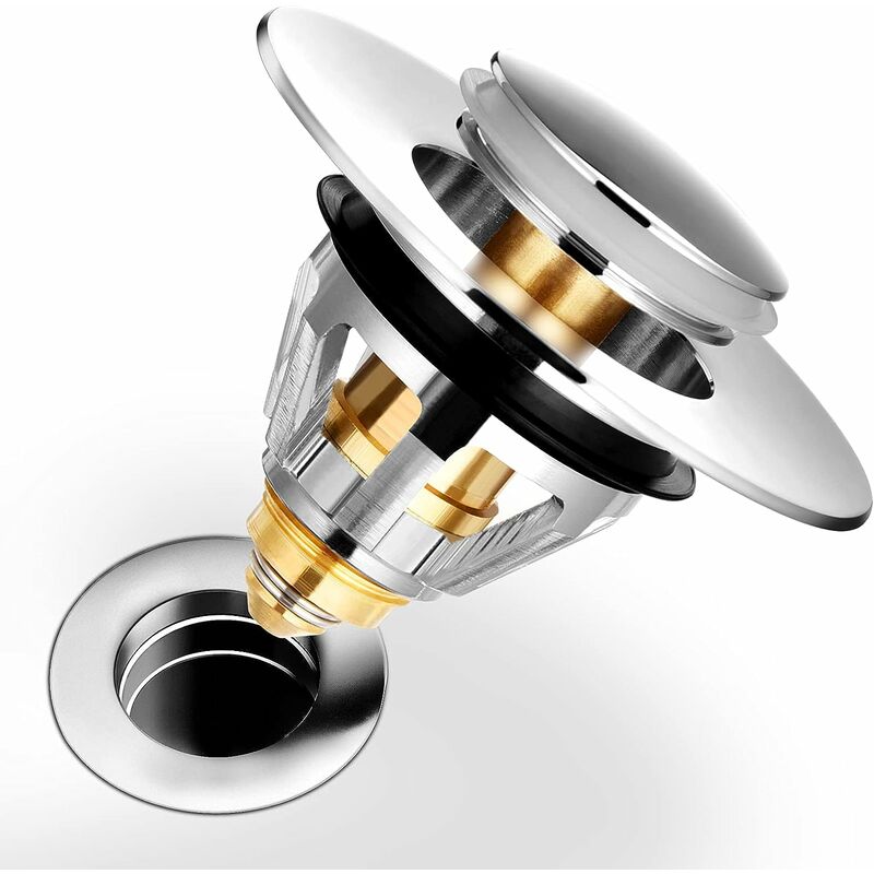 Dimensioni del prodotto - Il nostro tappo di scarico è adatto per fori di troppopieno con un diametro di 34-38 mm. Si prega di controllare le dimensioni prima. 【Installazione semplice】Lo scarico del lavandino può essere installato facilmente senza l'uso di alcun attrezzo grazie alla struttura semplice e conveniente. 【Filtro anti-intasamento-lavello Filtro: puoi facilmente svitare il filtro e catturare capelli e piccole cose, impedisce che il tubo dell'acqua si ostruisca. 【Estetica del materiale eccellente】 Il nostro filtro a scatto è realizzato in acciaio inossidabile e rame puro, ed è cromato, protegge efficacemente dalla ruggine, comprese le doppie guarnizioni in silicone, prevenendo perdite d'acqua. 【Ampio utilizzo】 Il tappo di scarico può essere utilizzato in bagno per lavelli e vasche, nonché bidet . Per la maggior parte Il nostro scarico per lavello è realizzato per i fori di troppopieno di 1,33~1,49 pollici, o 34~38 mm Antiruggine Con un nucleo in rame puro, può prevenire la