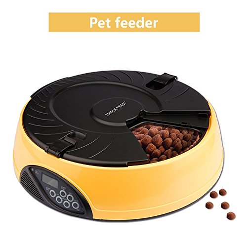 Triple Tree Mangiatoia Automatica Mangiatoia con akustischer notifica + Timer funzione 6 pasti per cani e gatti fodera Rigida (giallo)