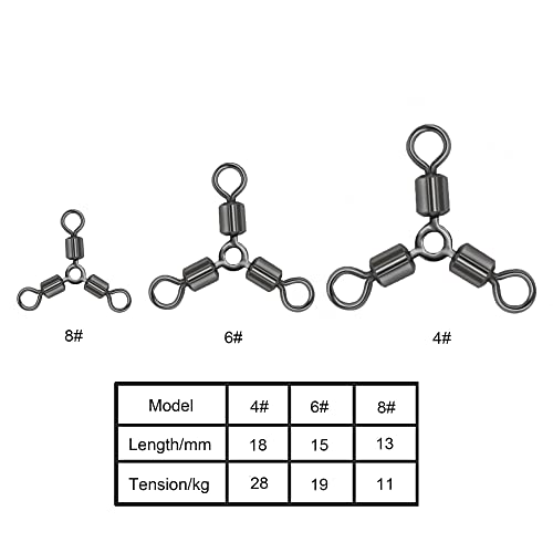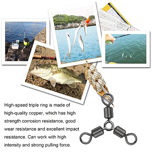 30pz Triplo Cuscinetto a Sfera Girevole connettore di Linea Gancio Solido cuscinetti a sfera rotanti a 360 gradi Girelle di Pesca Ad Alta Velocità 3 Rulli Girelle Tripla Girelle Connettore (3#)