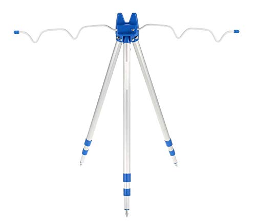 Supporto per canna da pesca. Eccellente treppiede per tutti i tipi di pesca. Alluminio resistente. Lunghezza telescopica regolabile.