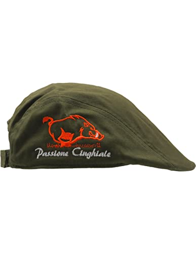 Trischitti Coppola Stampa Cinghiale Verde con Patch Arancio