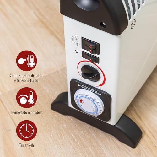 Timer: imposta il riscaldatore in modo che funzioni solo per un periodo di tempo predefinito (fino a 24 ore). Non rischierai più di dimenticartelo!