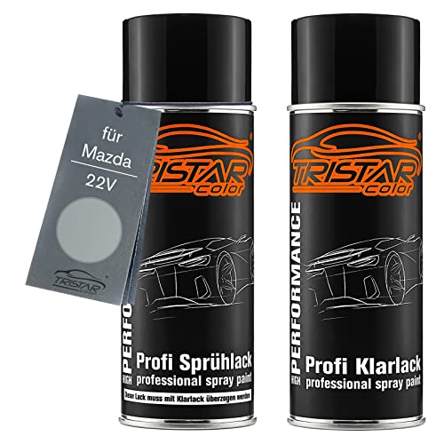 TRISTARcolor Vernice per auto Kit di bombolette spray per Mazda 22V Sunlight Silver Metallic/Satinsunlight Silber Metallic vernice di base vernice trasparente bomboletta a spruzzo