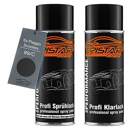 TRISTARcolor Vernice per moto Kit di bombolette spray per Piaggio Scooters 99/C Nero Perl Metallic Mat vernice di base vernice trasparente bomboletta a spruzzo 400ml