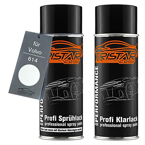 TRISTARcolor Vernice per auto Kit di bombolette spray per Volvo 614 Ice White/Blanc Glace vernice di base vernice trasparente bomboletta a spruzzo 400ml