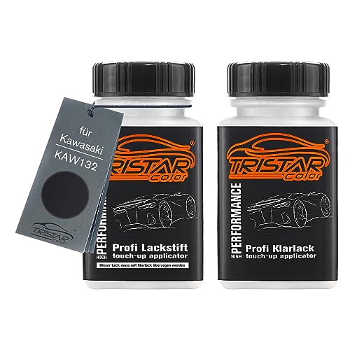 TRISTARcolor Vernice per moto Kit stilo di ritocco per Kawasaki KAW132 Bluish Black Perl Vernice di base vernice trasparente ognuno 50ml