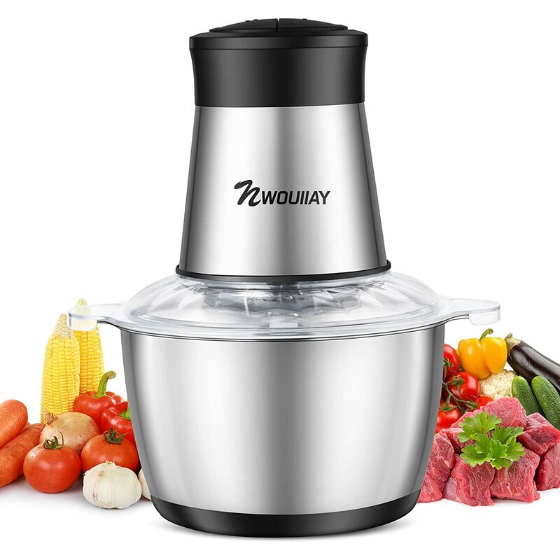 Elevata potenza da 300 W: il tritacarne ha un motore ad alta potenza e l'elevata potenza da 300 W può tagliare facilmente tutti i tipi di piatti in 10 secondi, non devi preoccuparti di ingredienti difficili da carne. Regolazione della velocità a 2 livelli: il tritatutto ha 2 livelli di velocità, la velocità può raggiungere i 3600 giri/min, la bassa velocità può tritare verdure, peperoni, aglio, ecc. E l'alta velocità può tritare carote, carne disossata, frutta, ecc. Adatto per una varietà di ingredienti.Grande capacità e acciaio inossidabile: il tritatutto elettrico da cucina è dotato di una ciotola di miscelazione da 3 litri di grande capacità, che può tritare una grande quantità di ingredienti alla volta e la parete interna ha una linea di scala del volume massimo. Il design rimovibile in acciaio inossidabile è più resistente e facile da pulire.Dopo l'uso, la ciotola può essere rimossa e messa in lavastoviglie per la pulizia.Lama a 2 strati: il tritatutto elettrico ha una lama in