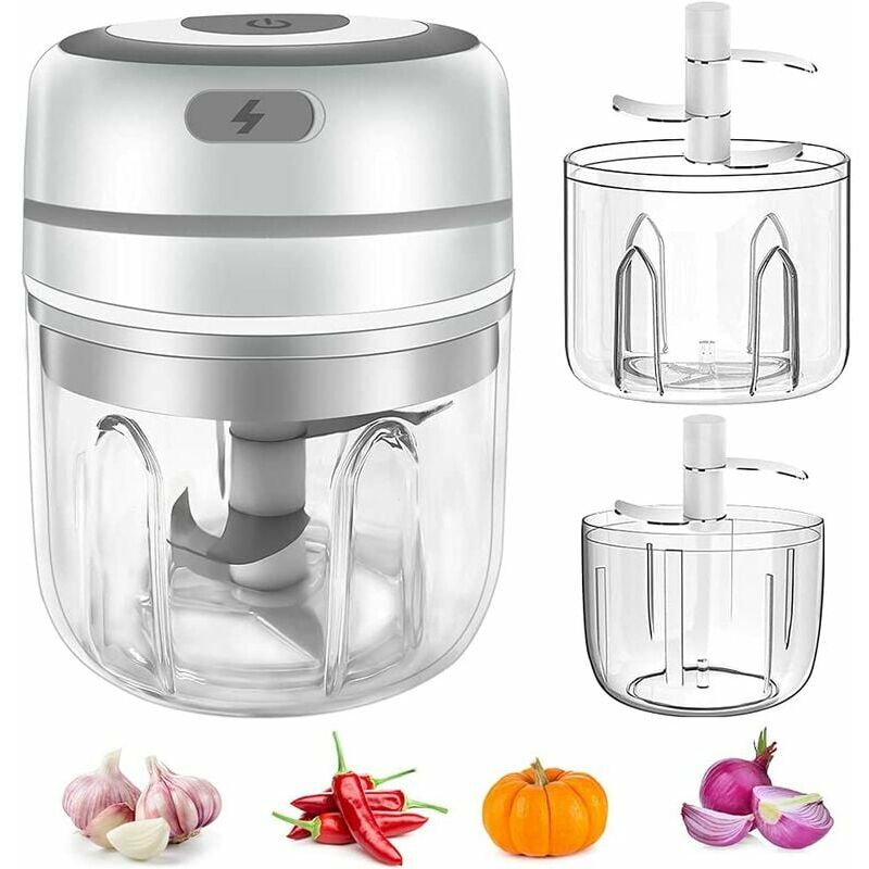 La confezione include 1 testa motore, 1 tazza da 250 ml, 1 tazza da 100 ml, 2 lame e 1 cavo USB. Carne e verdure possono essere tagliate in tagli diversi, il che è più sicuro e più igienico. Questo mini tritatutto può aiutarti a svolgere rapidamente piccoli lavori, come tritare aglio, zenzero, peperoni, carote, verdure, cipolle, noci, ecc. tritatutto a mano, chiudi il coperchio e accendilo con un solo tocco per tritare rapidamente il cibo, eliminando la necessità di estrarre a mano. Può trasformarsi in purea di aglio in 10 secondi, risparmiando più tempo ed energia e liberando davvero le mani.< /p> [Ricarica USB - Dotato di caricabatterie USB, batteria ad alta capacità da 1200 mAh con lunga durata della batteria. Con sole 3 ore di ricarica, puoi goderti il taglio senza fili per più di un mese. Il tagliaverdure elettrico può essere ricaricato in vari modi, tra cui batteria ricaricabile, alimentatore, computer e laptop. 【Facile da pulire】 Il corpo e il coperchio del tagliaverdure sono