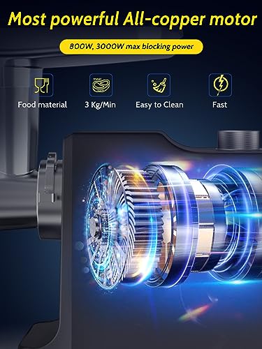 【Tritacarne Elettrico Potente】Dailyswee chopped stainless steel with 800 W pure copper motorcycles (max 2500 W) which can produce 5.5 pounds of minced meat in 1 minute. Perfetto per macinare carne di manzo, maiale, pollo e anatra ecc. 【Avviso】 Attendere che il motore si raffreddi dopo 10 minuti di macinazione.