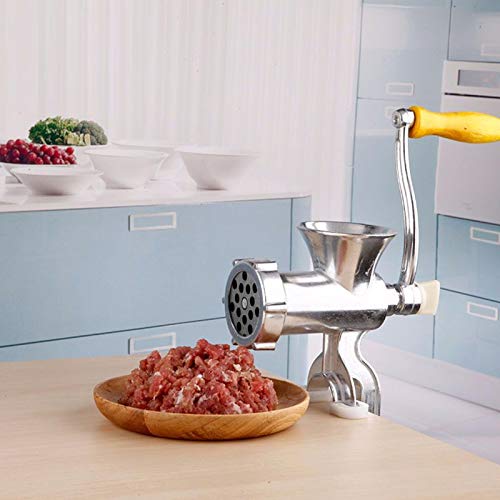 MATERIALE: tritacarne realizzato con struttura in lega di alluminio, clistere di plastica per alimenti, fusione nel suo insieme, resistente e durevole, manico salva-lavoro, comodo e bello.