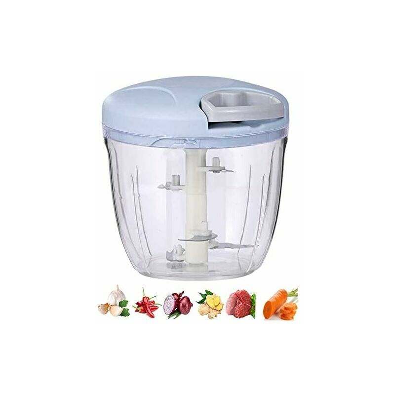 Tritacipolle manuale, spremiaglio a 5 lame da 900 ml, per insalata di cipolle, pesto, prezzemolo, macchina per tagliare salsicce/noci, vaniglia (blu)
