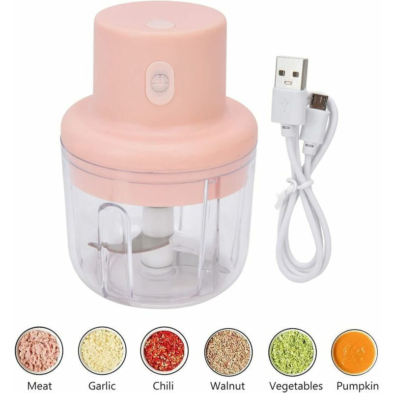 Caricatore USB portatile - Mini tagliaaglio elettrico, questo robot da cucina da 250 ml ha un design leggero ed elegante, di piccole dimensioni, portatile e poco ingombrante, perfetto per viaggi, cene di famiglia all'aperto, cucina in campeggio o altre attività all'aperto. /p> 【Facile da usare】Questo tritatutto elettrico è molto semplice e facile da usare. Puoi andare a mani libere quando tagli, basta mettere il cibo o gli ingredienti nel mini robot da cucina, bloccare il coperchio e premere il pulsante del mini tritatutto., puoi ottenere cibo tritato in modo uniforme in pochi secondi, risparmiando più tempo e fatica, perfetto per la tua cucina quotidiana. 【Facile da pulire】 L'intero corpo del mini tritacarne è impermeabile e può essere risciacquato direttamente con acqua dopo l'uso e accuratamente puliti dopo il risciacquo. Le tazze e le lame del frullatore sono rimovibili e antimacchia, il che faciliterà la pulizia. 【Ampio utilizzo】 Il mini taglia-aglio può tritare rapidamente