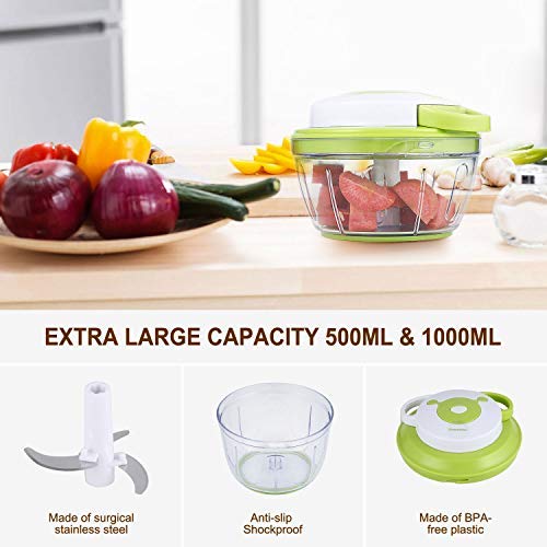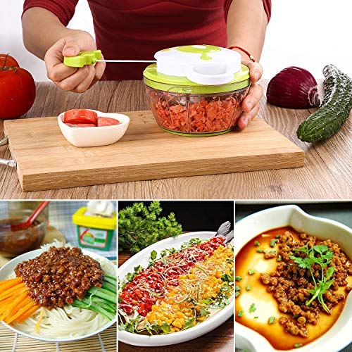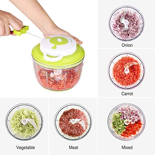 Tritatutto Manuale con 3 Lame,Chopper Alimentare Manuale 500ML, Tritaverdure, Taglia Verdure da Cucina per Sminuzzare/Affettare/Miscelare Alimenti (Frutta/Aglio/Cipolle/Pesto/Insalata di Cavolo)