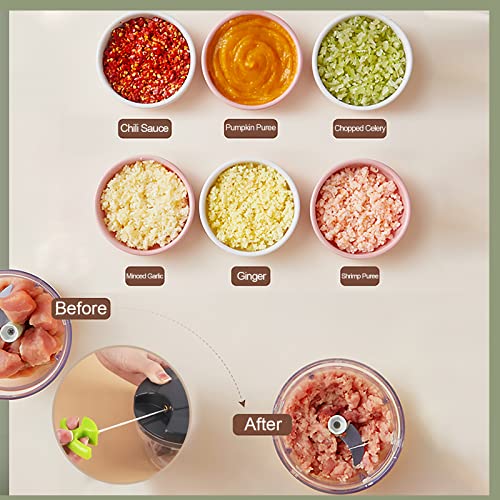 【RISPARMIO DI SPAZIO E PORTATILE】 Facile da riporre in primo luogo. Questo tritatutto manuale presenta i vantaggi di struttura semplice, economia, praticità, volume compatto e praticità. La capacità di 2 tazze è buona per la piccola cucina, il camper, i viaggi e il campeggio.