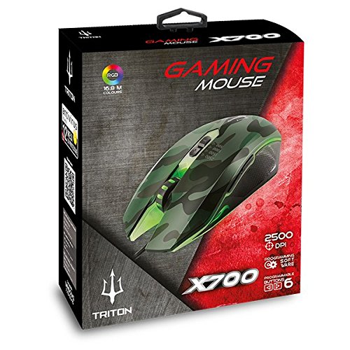Triton X700 Mouse gaming Camouflage, risoluzione fino a 2500 dpi, 6 pulsanti programmabili, luce LED tipo RGB programmabile, Software di gestione.