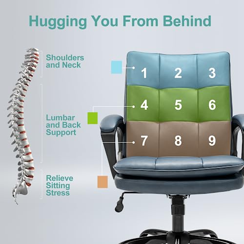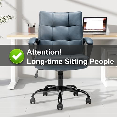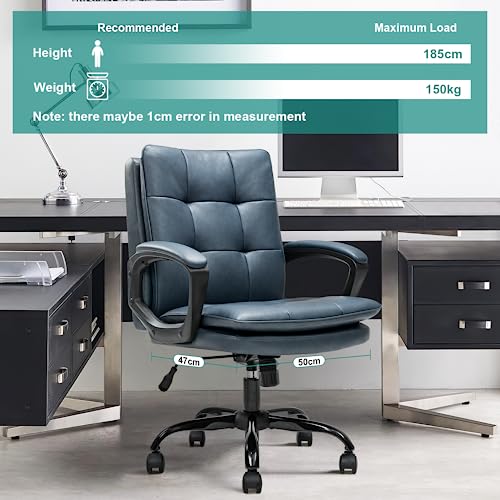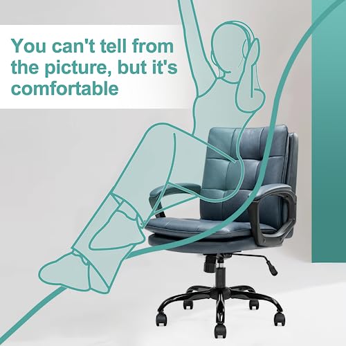 TRIUMPHKEY Sedia da scrivania in pelle blu, sedia da ufficio, sedia per computer sedia da scrivania executive sedia girevole altezza regolabile con rotelle braccioli 150 kg (Blu)