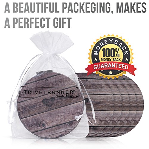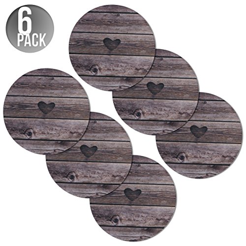 Trivetrunner - Set di sottobicchieri per cocktail estivi, contenente 6 dischetti rotondi e piatti da 10,2 cm, antiscivolo, per proteggere la superficie di tavoli e banconi da bevande calde o fredde, adatti per qualsiasi bicchiere, boccale o tazza, con 5 design a scelta, motivo: legno rustico