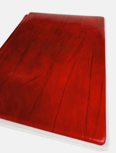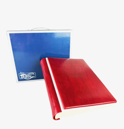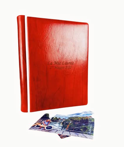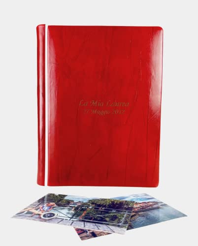 TriVin Art Album Fotografico Artigianale in Vero Cuoio con Profilo in Similpelle pregiato. Personalizzabile con Incisione. Qualsiasi Evento. (Cuoio Piega Rosso/Bianco)