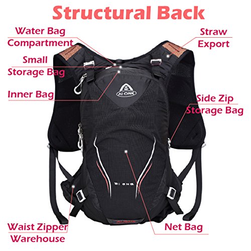 SUPPLEMENTO DELL'ACQUA - BPA-free e FDA con camera d'idratazione approvata dalla FDA equipaggiata, resistente alla pressione e impermeabile. Bere direttamente l'acqua con la cannuccia o tirarla fuori facilmente ogni volta che è necessario senza togliere il giubbotto o fermare i tuoi passi. Comodo zaino da trail running