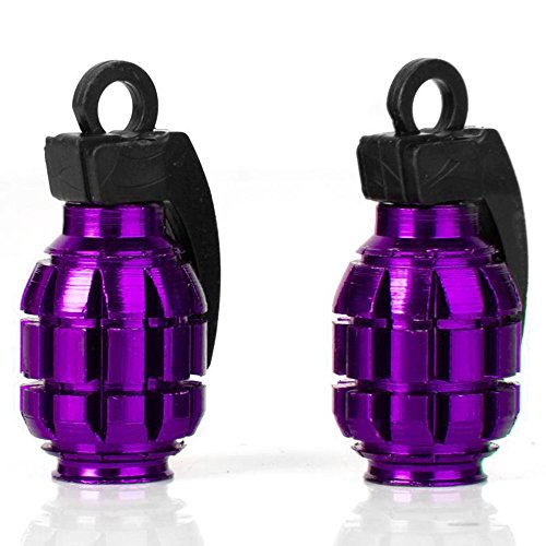 TRIXES Cappucci Antipolvere per Pneumatici Auto e copertoni di Biciclette a Forma di Granata, Colore Viola, Un Paio da 8 mm. Valvole Schrader.