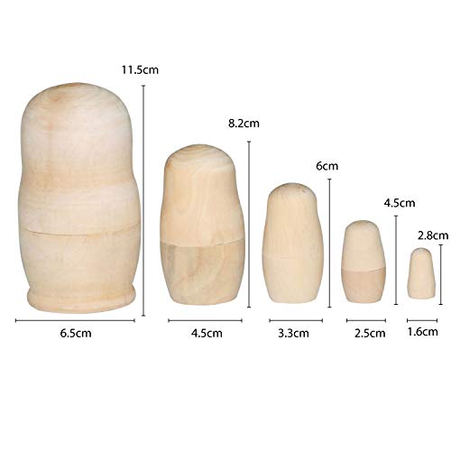 TRIXES 5 forme di matriosca in legno non dipinte, vuote, per il fai da te, lavori creativi e artigianali.