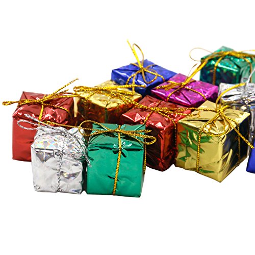 TRIXES Set di 12 sfarzose scatole di Natale in colori assortiti da appendere all'albero.