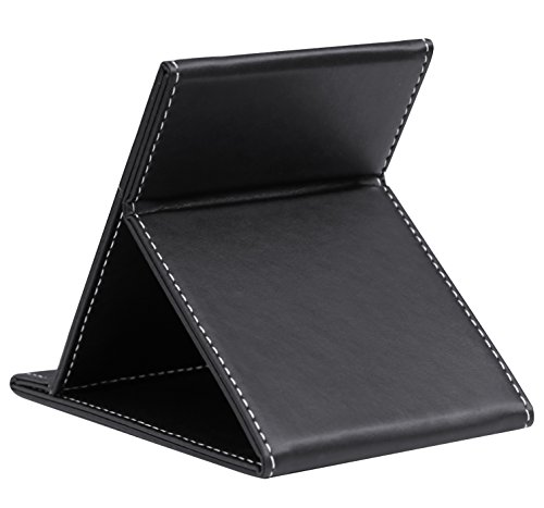 TRIXES Specchio pieghevole con cornice in finta pelle nera.