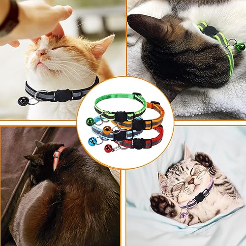 TRKETK 8 Pezzi Collare Gatto Riflettente, Collari per Gatti con Campanelli Collari di Sicurezza per Gatti a Sgancio Rapido Regolabile 19-32 cm Antistrozzo (8 Colori e 2 Etichette Anti-Smarrimento)