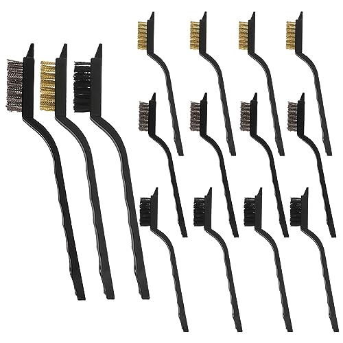 TRKETK 15 Pezzi Mini Spazzole Metalliche, Manico Curvocon con Foro per Appendere Spazzole Metalliche in Nylon/Ottone/Acciaio Inossidabile per La Pulizia di Ruggine Sporco Polvere e Scorie