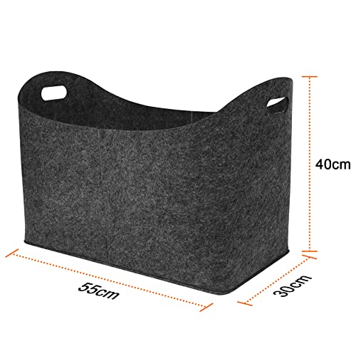 TRMLBE Cesto per Legna da Ardere pieghevole con manici per il trasporto Borse in feltro Shopper Borsa per legna da ardere giornali Borsa per la spesa 55 x 30 x 40 cm - 2 pezzi antracite