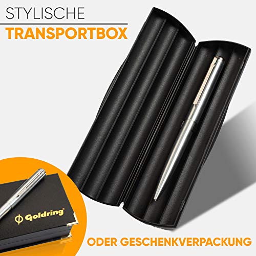 Trodat 304130 Gold Ring Grando Matic, exklusiver timbro penna a sfera in acciaio inox levigato, Timbro individualmente gestaltbar, Mine Blu