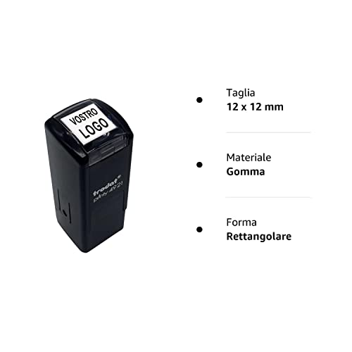 La dimensione massima dell'impronta è 12 x 12 mm, puoi personalizzarlo con 1 o 2 righe di TESTO e MAX 7 caratteri per riga, oppure con la TUA GRAFICA o LOGO: clicca su PERSONALIZZA e scegli la modalità di personalizzazione che preferisci, otterrai un timbro utile per personalizzare le tessere fedeltà del tuo Negozio, Bar, Pizzeria, Salone di Parrucchiere o Barbiere, Centro Estetico