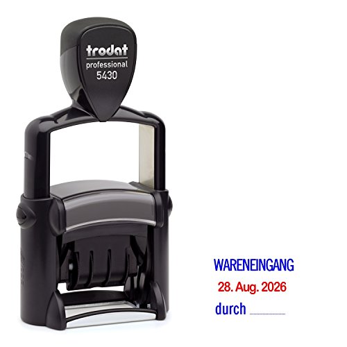 Trodat Professional 5430, Timbro professionale, con data, con 2 cuscinetti colorati, blu/rosso + testo a scelta WARENEINGANG