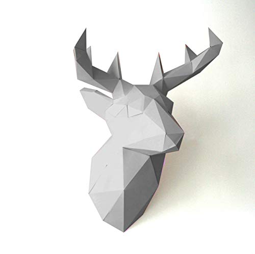 Trofeo di carta di cervo - testa animale 3D origami (Bianco)