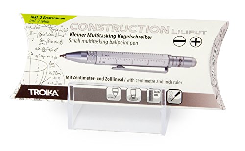 TROIKA Original PIP25/SI - Penna a sfera multifunzione (piccola) - righello centimetro/pollice - cacciavite a croce - pennino (argento)