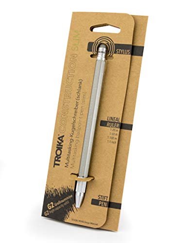 TROIKA - Penna a sfera sottile con righello in centimetri/pollici, scala 1:20/1:50, pennino capacitivo, mina nera G2, alluminio/ottone, colore: titanio opaco