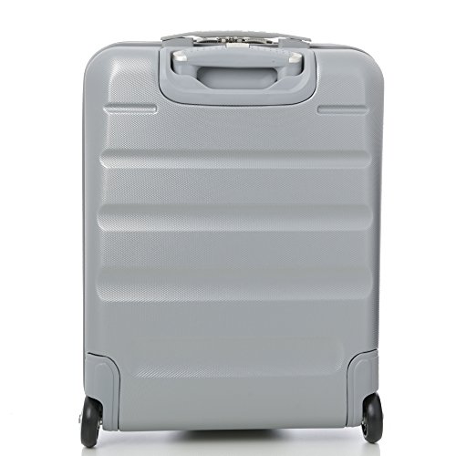 Trolley Aerolite ABS - bagaglio a mano 55x35x20 cm - Valigia rigida con 2 ruote. Ideale a bordo di Ryanair, Alitalia, Meridiana, EasyJet, WizzAir. Colore: argento