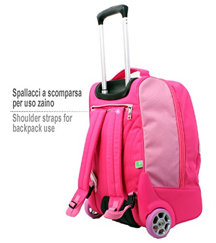 TROLLEY BIG - SJ GANG - Rosa Azzurro - 33 LT Uso ZAINO - spallacci a scomparsa totale - Scuola e viaggio