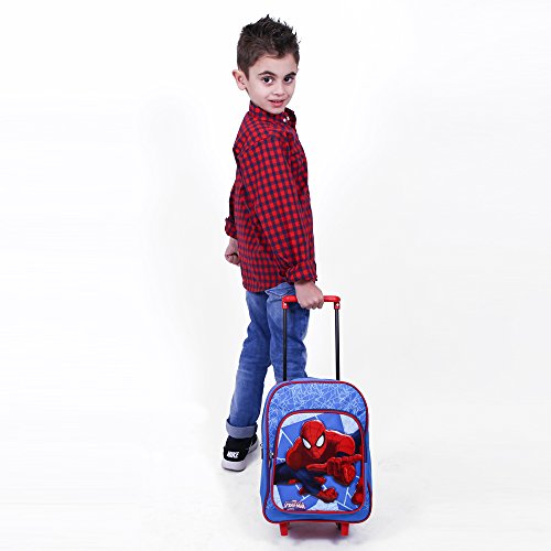 Trolley bambino Marvel Spiderman - Zaino con ruote e bretelle regolabili per asilo e scuola elementare con stampa Uomo ragno - Blu e Rosso - Perletti 23x31x14 cm