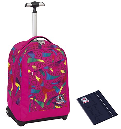 Trolley Invicta + Cartellina A4 - Multicolore Mix - Rosa - Spallacci a Scomparsa! Zaino 35 LT Scuola e Viaggio
