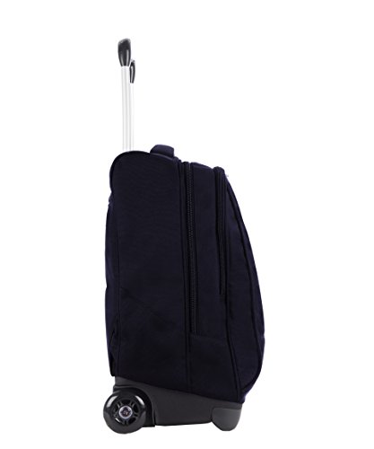ALTRE CARATTERISTICHE:Spallacci a scomparsa totale nello schienale quando utilizzato come trolley. Ruote da 75 mm. Barra doppia telescopica con doppia regolazione. Fondo rinforzato e protezioni angolari. Tirazip in cordino riflettente..
