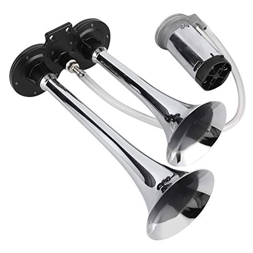 Tromba D'aria 12V 135DB, Tromba D'aria Universale a Doppia Tromba Lega di Alluminio per Camion per Auto Treno Veicoli per Moto Trombe Claxon per Barche(Argento)