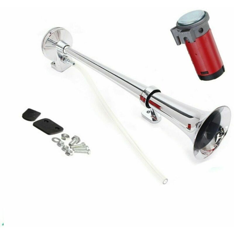 Avvisatore acustico pneumatico Avvisatore acustico da nebbia cromato con compressore 12V Auto Camion Autobus Denominazione: Aria compressa Avvisatore acustico La Cucaracha Avvisatore acustico/avvisatore acustico/avvisatore da nebbia Sirena Altoparlante 12V ★CE ROHS★12V 24V per auto, camion, lega di tungsteno da 150 dB Molto bello Il suono di questo avvisatore acustico relativamente piccolo è 150 dB (da 1 metro di distanza) e ha una frequenza di 315 Hz. quello di un clacson più grande. Un clacson molto forte con un unico tubo d'aria per la tua moto, auto, barca, camion, ecc. Il suono potente suona immediatamente quando si preme il pulsante di allarme. Non c'è ritardo. Il piccolo compressore staccato ovviamente è fornito. Descrizione: Non è necessario alcun sistema d'aria. Facile da usare installare, finiture cromate lucide e messe a punto tromba del treno sonoro. Potrebbe essere piccola, ma hanno una potenza che può rivaleggiare con qualsiasi tromba ad aria compressa sul mercato. al di