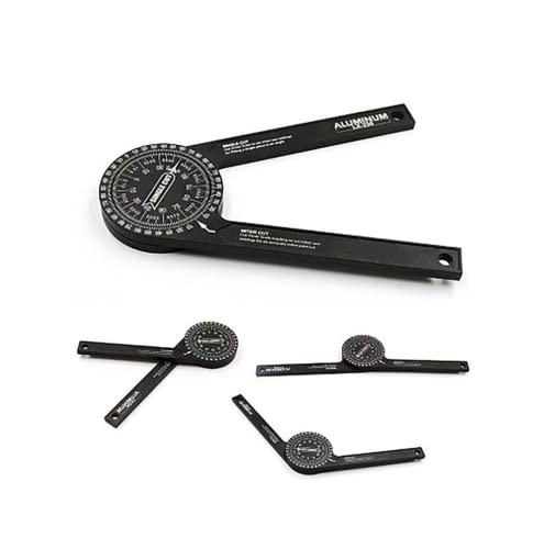 【Materiale di alta qualità】: il goniometro per troncatrice è di design a forma di "O" durante il funzionamento e garantisce una lettura regolare e precisa sugli angoli interni/esterni, realizzato in lega di alluminio lavorata a CNC. che ha una forte resistenza all'usura e resistenza alla corrosione. Il goniometro è resistente e robusto rispetto ad altre scale di plastica per cercare angoli.