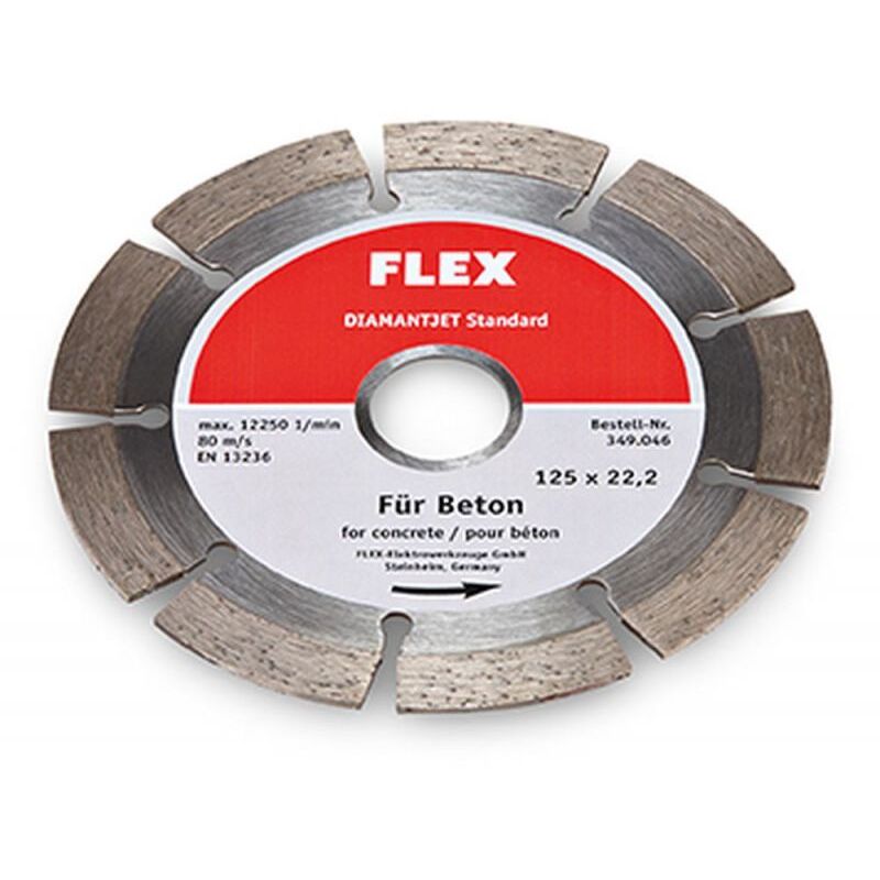FLEX Mola di troncatura diamantata Diamantjet Standard per calcestruzzo,125x22,2 Mola per troncare, rapida e di lunga durata, adatta per calcestruzzo e pietra Cod. ordine-349046 Diametro disco-125 mm Attacco dischi-22.2 Unità dimballaggio-1 pz