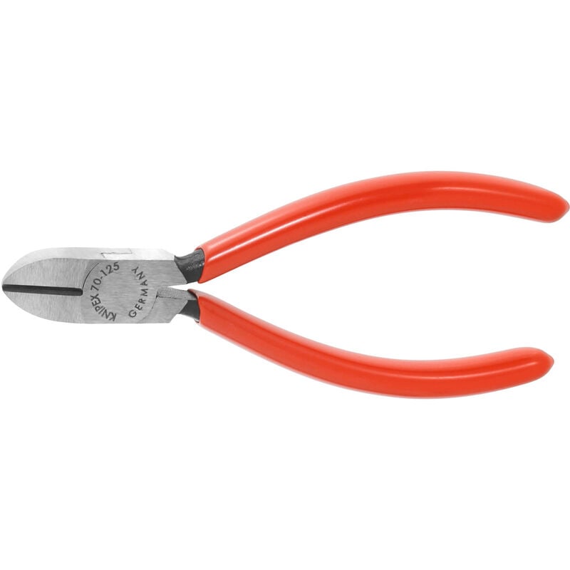Forma sottile con taglienti temprati a induzione (circa 62 HRC). Pinza bonderizzata nera, testa in esecuzione lucidata, manici rivestiti in plastica. Norma: DIN ISO 5749 Materiale: Acciaio al cromo-vanadio, forgiato e temprato in bagno d'olio. Dati tecnici Impugnatura rivestiti in plastica Tronchese laterale ad elevate prestazioni no Superficie bonderizzata nera, testa lucidata Materiale Acciaio al cromo-vanadio Con molla attivabile no Norma DIN ISO 5749 Processo di produzione Taglienti temprati a induzione (ca. 62 HRC) Tipo di prodotto Pinza tagliente Lunghezza complessiva, mm 125 Capacità di taglio filo dolce fino a ⌀, mm 3 Capacità di taglio filo duro fino a ⌀, mm 1,5